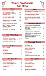 Talia’s offers a full-service bar. We do not allow bringing your own wines or liquors. No corkage fees. Please prepay for your wines or liquors before Shabbat.